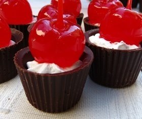 Copinho de chocolate recheado com chantily e finalizado com cereja em calda. R$ 3,39